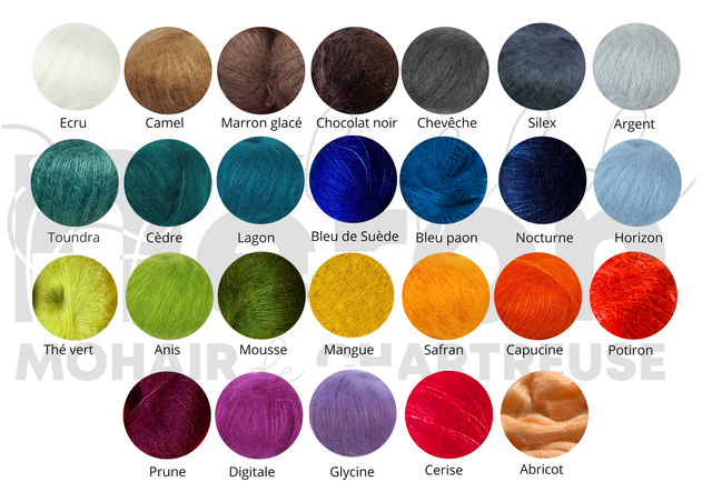 Pour réaliser ce fil, le mohair est lavé puis peigné dans le nord de l’Italie. La filature est réalisée dans le Tarn (Castres) et la teinture en Vendée (Les Epesses)